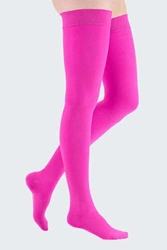 Wszystkie dostępne pończochy uciskowe wykonane są ze specjalnie skonstruowanych włókien, które zapewniają terapię odpowiednią dla 2 stopnia kompresji. Są przyjazne dla skóry, dlatego ich noszenie jest komfortowe nawet w eleganckim obuwiu. Jako produkty specjalistyczne pończochy uciskowe drugiego stopnia zawsze powinny być noszone po zaleceniu lekarza oraz dobraniu odpowiedniego poziomu ucisku. Pończochy samonośne 2 stopnia mediven comfort doskonale zastąpią tradycyjne pończochy, zapewniając komfort i osłaniając zmiany na nogach. Ta wersja ma palce zamknięte, dlatego sprawdzi się do większości obuwia. Z drugiej strony medyczne pończochy samonośne w drugiej klasie ucisku duomed to świetne rozwiązanie, jeśli akurat planujesz założyć kryte obuwie z odsłoniętymi palcami. Wszystkie te modele dostępne są w kilku rozmiarach – pamiętaj, aby dobrać odpowiedni, co zagwarantuje najlepsze działanie produktu. Możesz je kupić również w paru wersjach kolorystycznych.