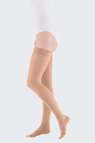 Wszystkie oferowane pończochy uciskowe 3 stopień kompresji są produktami medycznymi, które możesz nosić jedynie po konsultacji z lekarzem. Wynika to z faktu, że mają one również przeciwwskazania do noszenia, a co więcej – ważne jest, aby wybrać odpowiednie klasy kompresji w stosunku do powagi problemów, z którymi się borykasz. Produkty wykonane są z przyjemnych w dotyku materiałów, które dobrze odprowadzają pot i gwarantują uczucie ulgi i poprawę stanu nóg. Jeśli szukasz atrakcyjnego rozwiązania na letnie wyjście do butów z okrytym czubkiem, wybierz pończochy przeciwżylakowe 3 stopnia medieven forte. Będą one dobrze kryły niedoskonałości i zmiany na nogach, a przy tym dadzą komfort w trakcie ich noszenia, jak i też później. Dla osób, u których potrzeba noszenia wyrobów uciskowych ogranicza się do jednej strony, polecane są takie modele jak pończocha uciskowa 3 stopnia z pasem wokół brzucha medieven plus. Dodatkowo zagwarantuje ona lepsze układanie się na ciele nawet przy dużej aktywności.