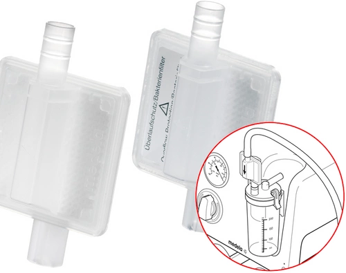 Filtr bakteryjny z zabezpieczeniem przelewowym, z końcówką Medela